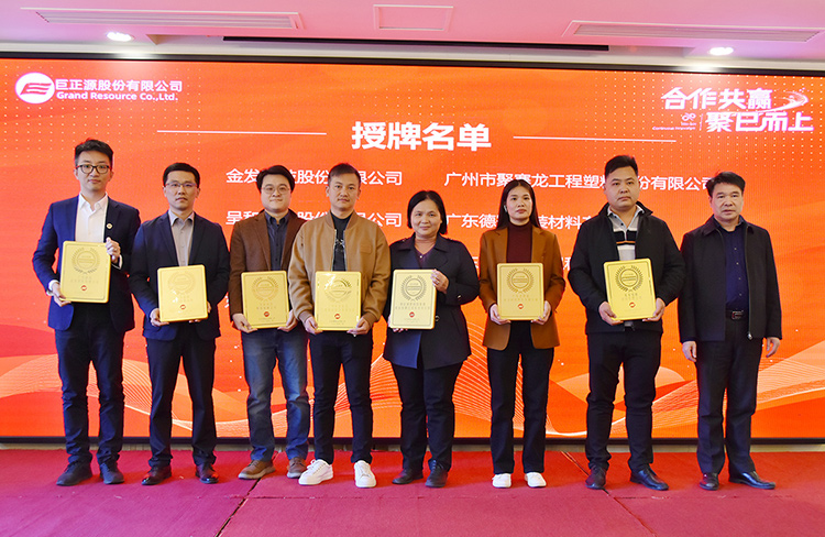 會議期間,巨正源向30家合作伙伴頒發(fā)2024年度戰(zhàn)略合作伙伴、優(yōu)秀客戶等獎項。廣物控股集團領(lǐng)導、巨正源領(lǐng)導班子為獲獎客戶頒發(fā)牌匾。