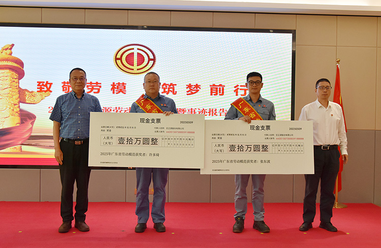 會議宣讀了對榮獲“廣東省勞動模范”的許多琦、張東波同志的表彰決定,對他們辛勤付出和工作成效予以肯定。公司領(lǐng)導(dǎo)為許多琦、張東波同志頒發(fā)獎金,并為許多琦、張東波“勞模和工匠人才創(chuàng)新工作室”揭牌。